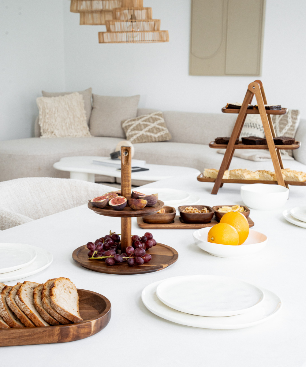 Das Akazie Lumo Tablett vereint minimalistisches Design mit der warmen, einzigartigen Maserung des Akazienholzes. Ideal zum Servieren von Gebäck, Brot oder kleinen Snacks – oder als stilvolles Deko-Element im Alltag. Ein natürlicher Akzent, der jeden Tisch veredelt.