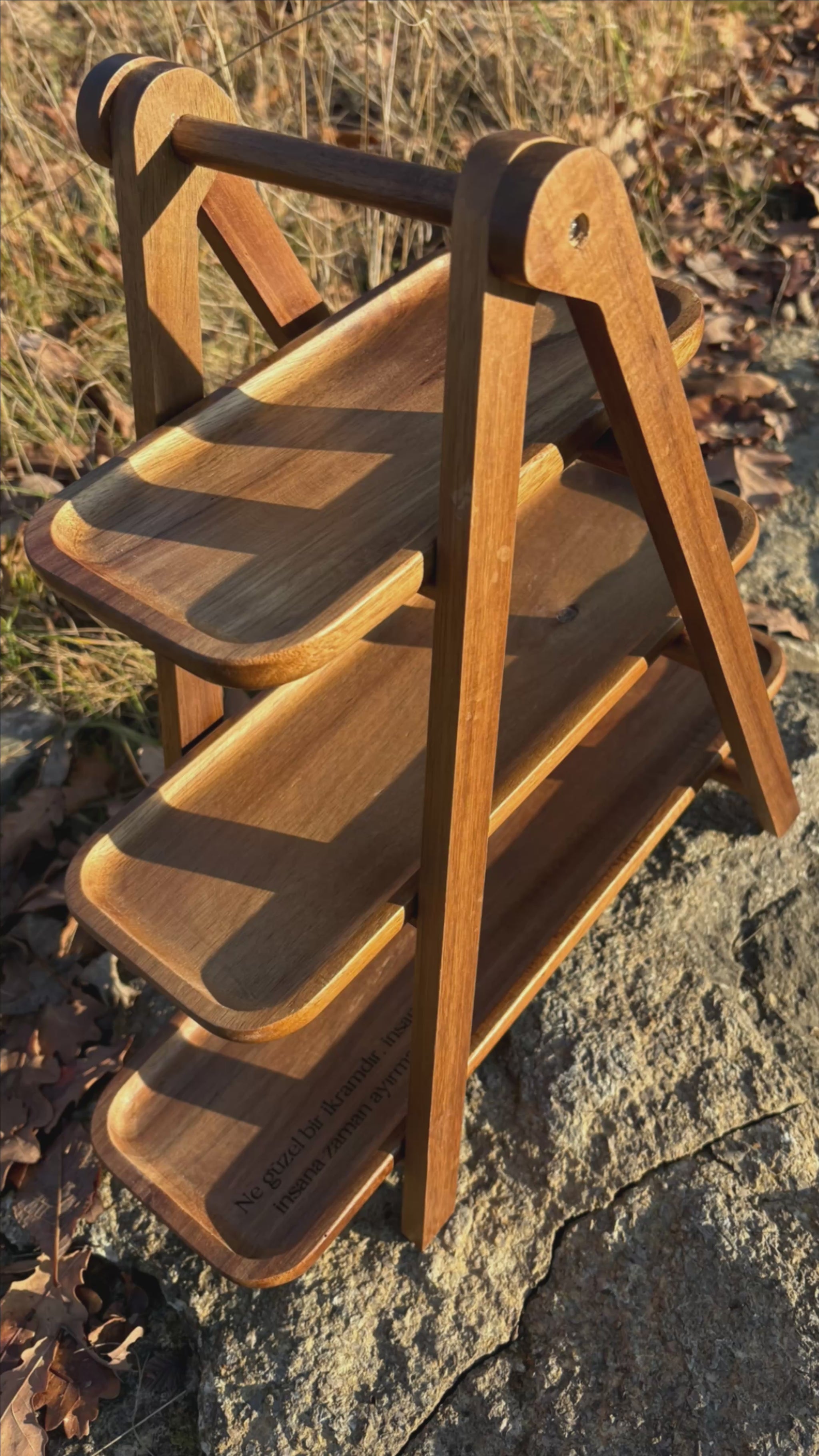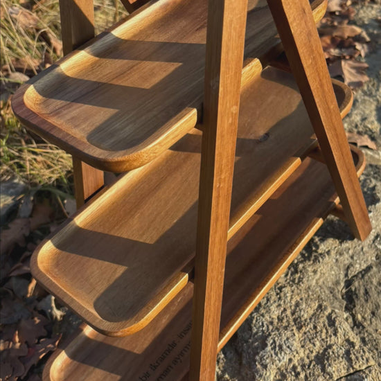 Diese elegante Etagere aus hochwertigem Akazienholz verbindet natürliche Wärme mit zeitlosem Design. Die feine Gravur setzt ein dezentes, stilvolles Highlight und macht sie zu einem besonderen Blickfang auf jedem Tisch.
